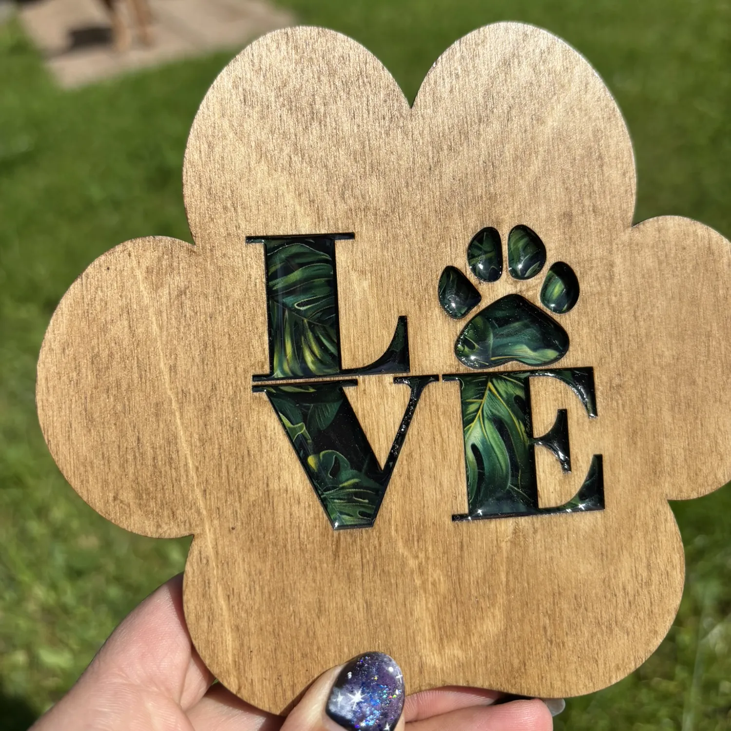 Wnętrze łapki skrywa zielone liście monstery, precyzyjnie wycięte, nadające całości wyjątkowej głębi. Trójwymiarowy efekt podkreśla transparentna, błyszcząca żywica, która nadaje dekoracji elegancki i nowoczesny wygląd.