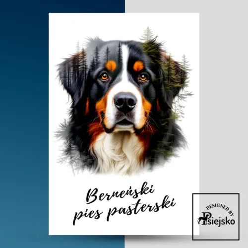 Tabliczka berneński pies pasterski las podwójna ekspozycja